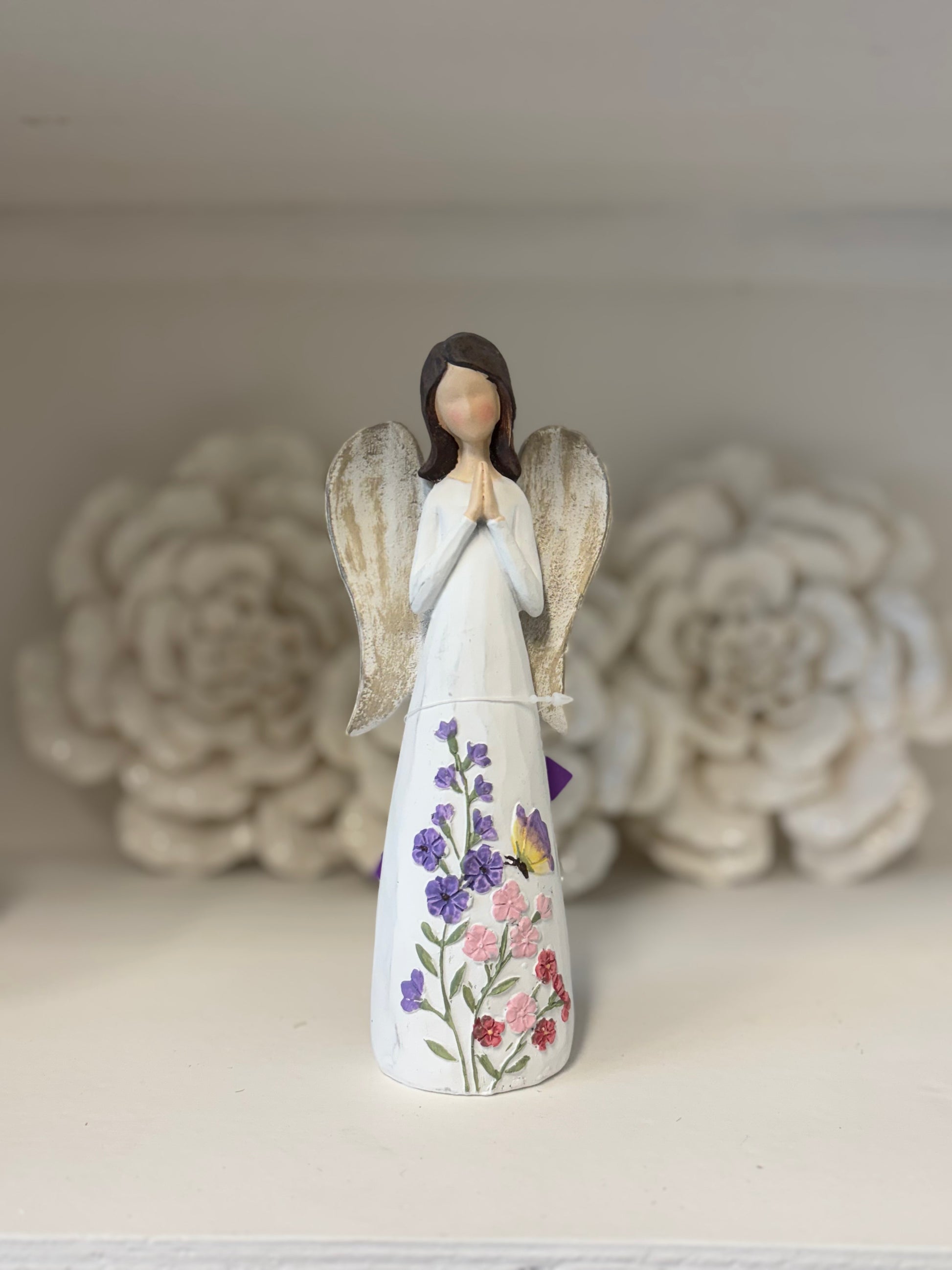 This resin angel figurine, adorned with delicate floral details, combines artistry and craftsmanship to create a serene decorative piece. Its durable resin construction ensures longevity, while the intricate floral accents add a touch of elegance, making it an ideal addition to any collection or a thoughtful gift for special occasions.