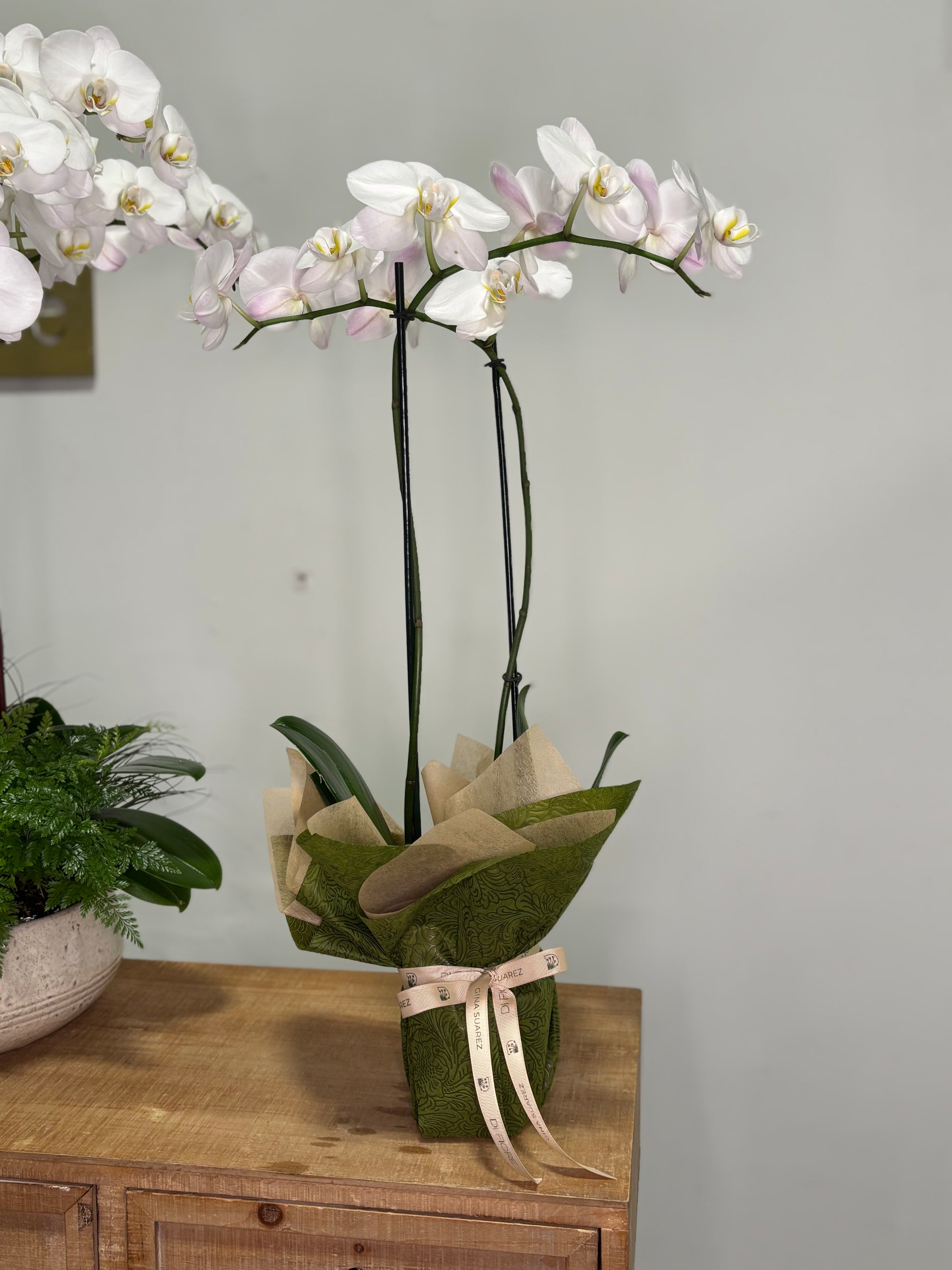 A minimalist yet captivating display, this arrangement features a stunning orchid stems that embodies simplicity and sophistication. Designed with intention and balance, the orchid is positioned to allow its natural beauty to take center stage. Ideal for intimate settings, thoughtful gifting, or adding a touch of elegance to any space, this arrangement is a graceful expression of refined charm.
